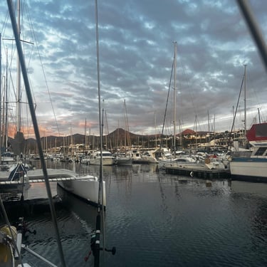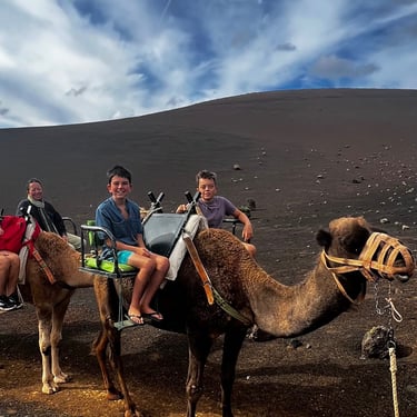 We then returned to Lanzarote and spent a few days resting in Calero Marina. We took a day trip to Timanfaya National Park to see some geothermal experiments and learn about the fascinating geography of Lanzarote. The boys enjoyed a camel ride around the volcanic region—they said it was bumpier than some of our sails! 🤣