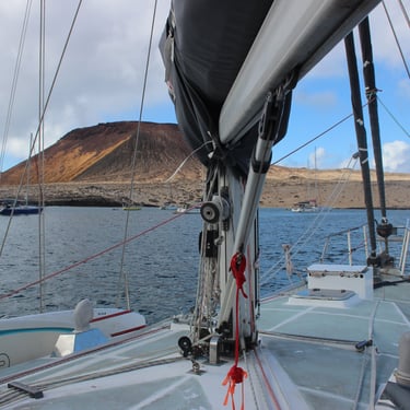 We arrived in Lanzarote just in time for the tail end of Storm Claudia. After two days at sea, we spent another two on the boat in a rolly but fairly well-protected anchorage.