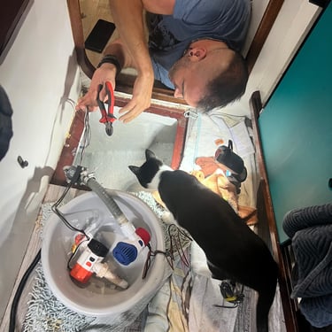 Illness slowed us more than weather did. Flu ran through the boat. A stomach bug followed. Then Mike needed hernia surgery. Not ideal — but being in one place made it manageable.